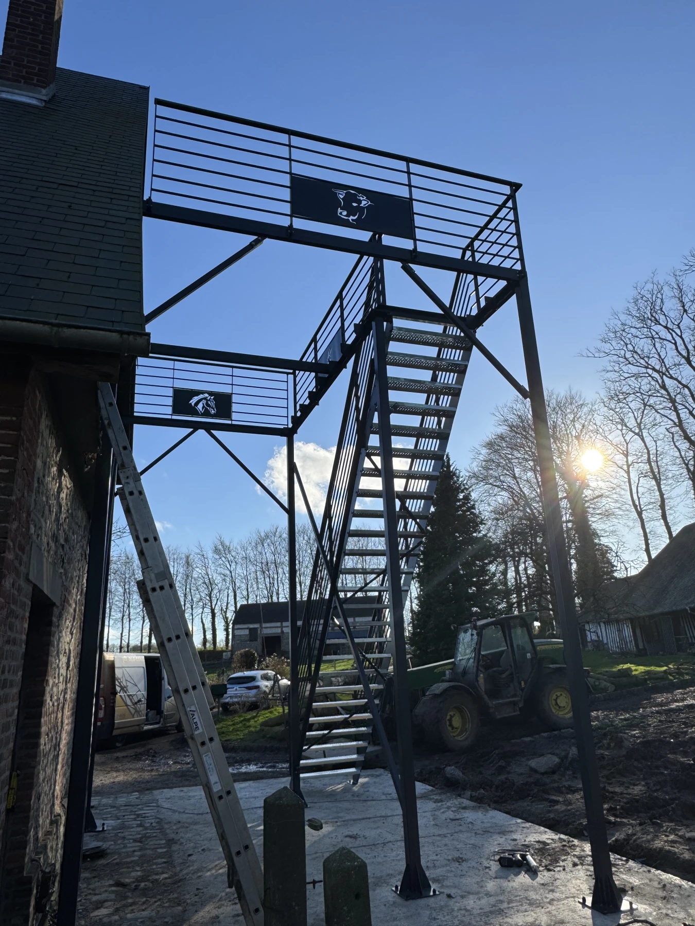 Prise de cote et conception d’une structure métallique dans nos ateliers pour avoir un accès direct dans la future propriété. La terrasse sur pilotis sera fait en second plan Traitement galvanisation à chaud + peinture thermolaquée 7016 mat Très jolie projet ,merci au client pour leur confiance une fois de plus Pour tous projet ne plus hésité 😉