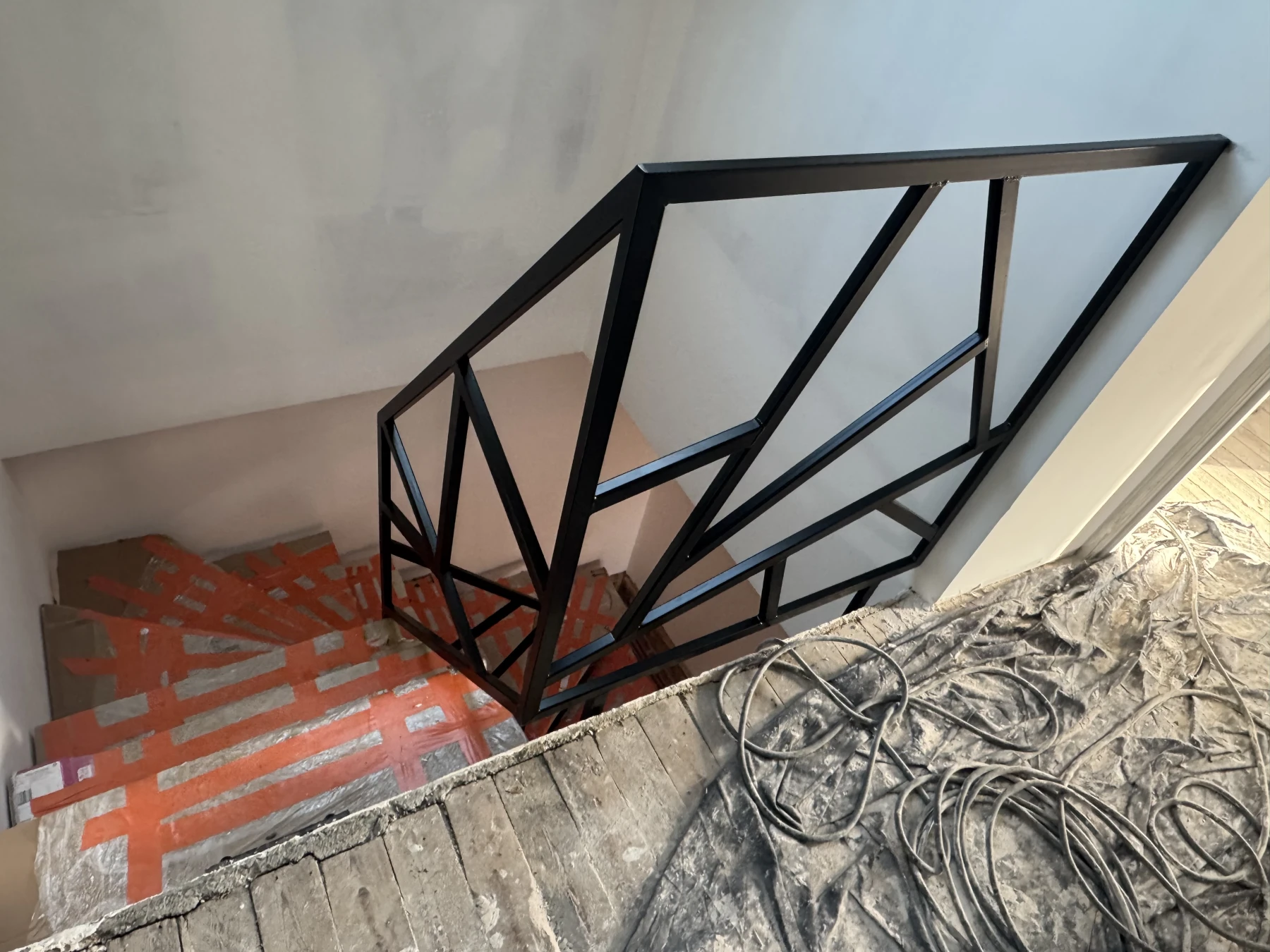 Suite du projet… Garde corps sur mesure façon nid abeille en tube 30x20 finition noir mat Thermolaqué
