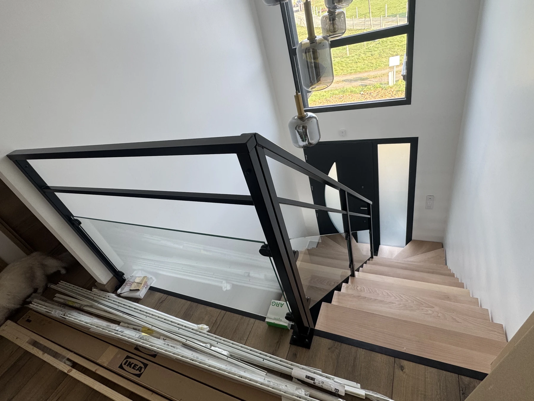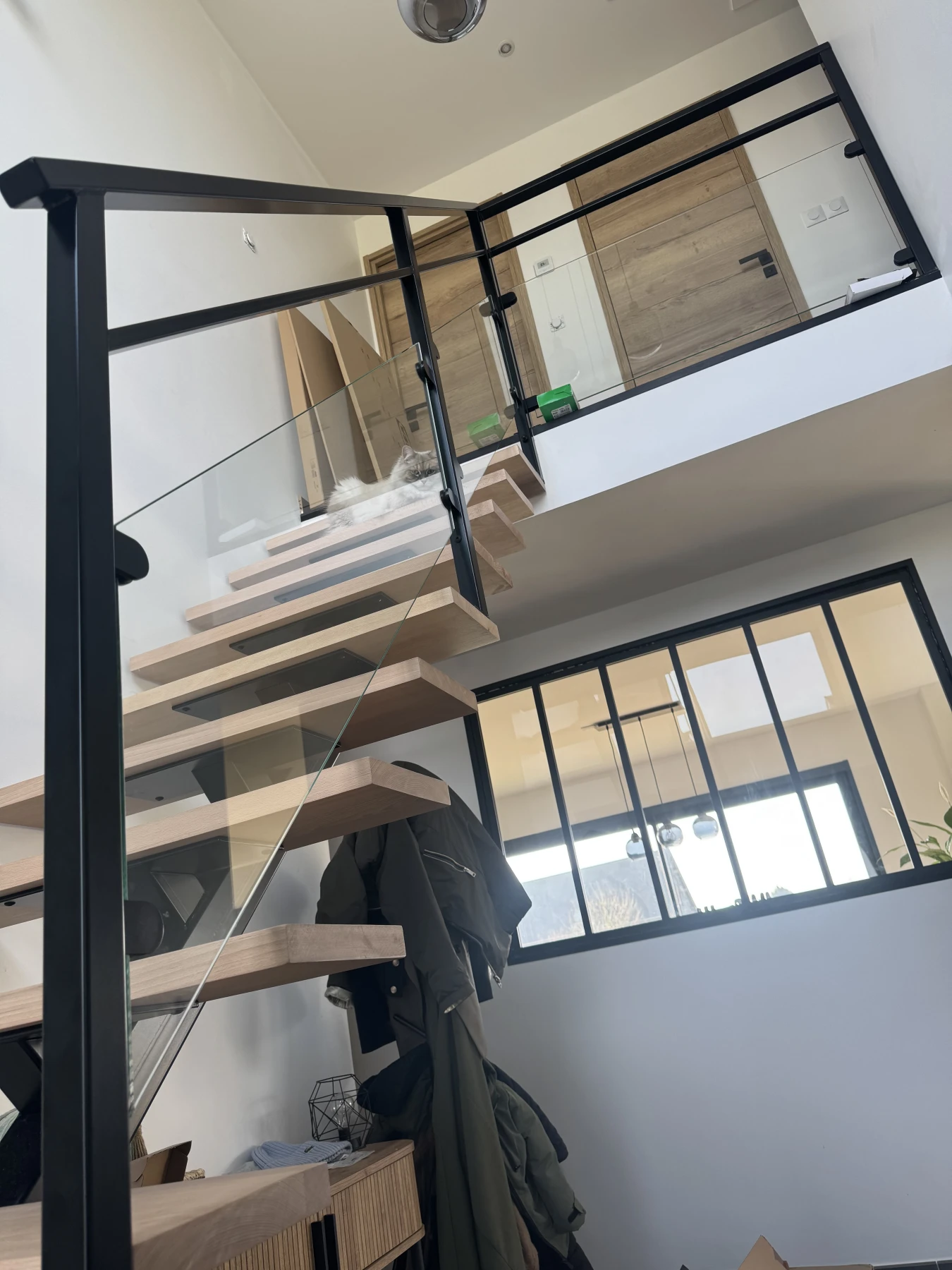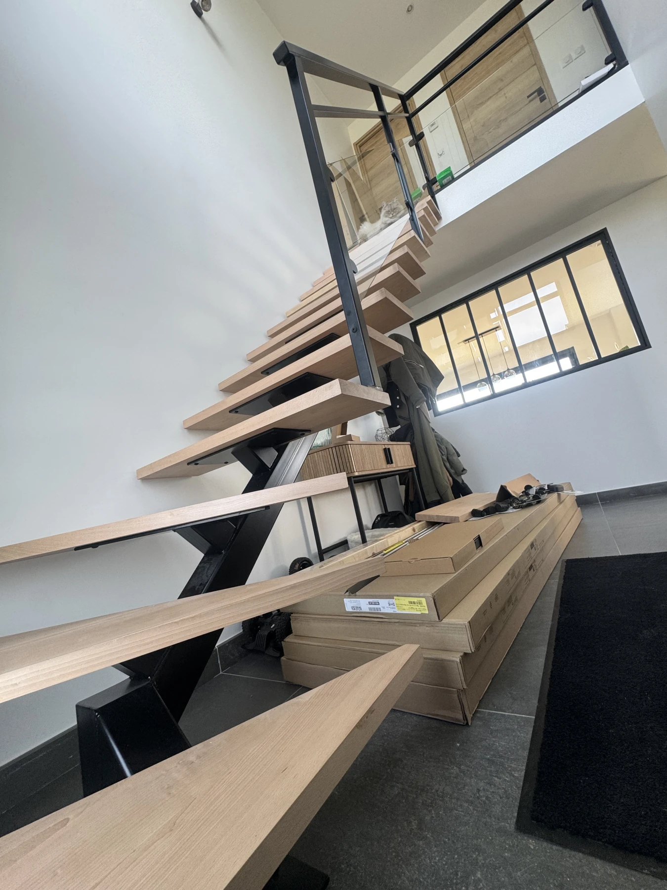 Encore une conception sur mesure by Dlg concept Escalier limon central 100x100x4 avec ses marches en hêtres épaisseurs 35mm finition peinture thermolaqué suivi des ses gardes corps assemblés sur place pour plus de précision. Hésitez pas devis gratuit 😀